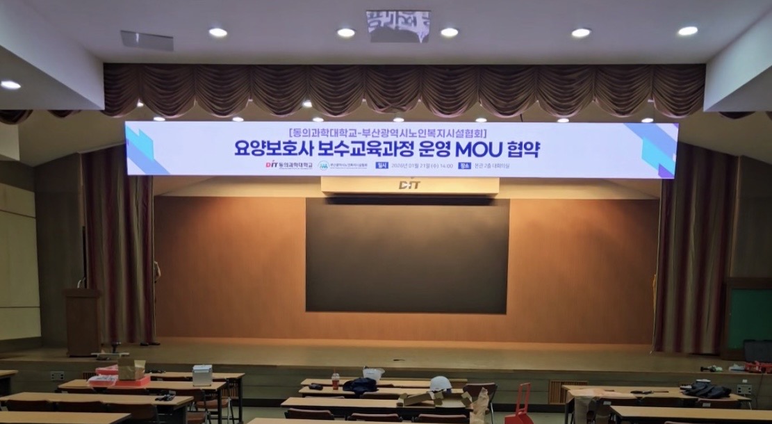 부산동의과학대학교 내부 공간에 P2.5mm 9000mm x 750mm