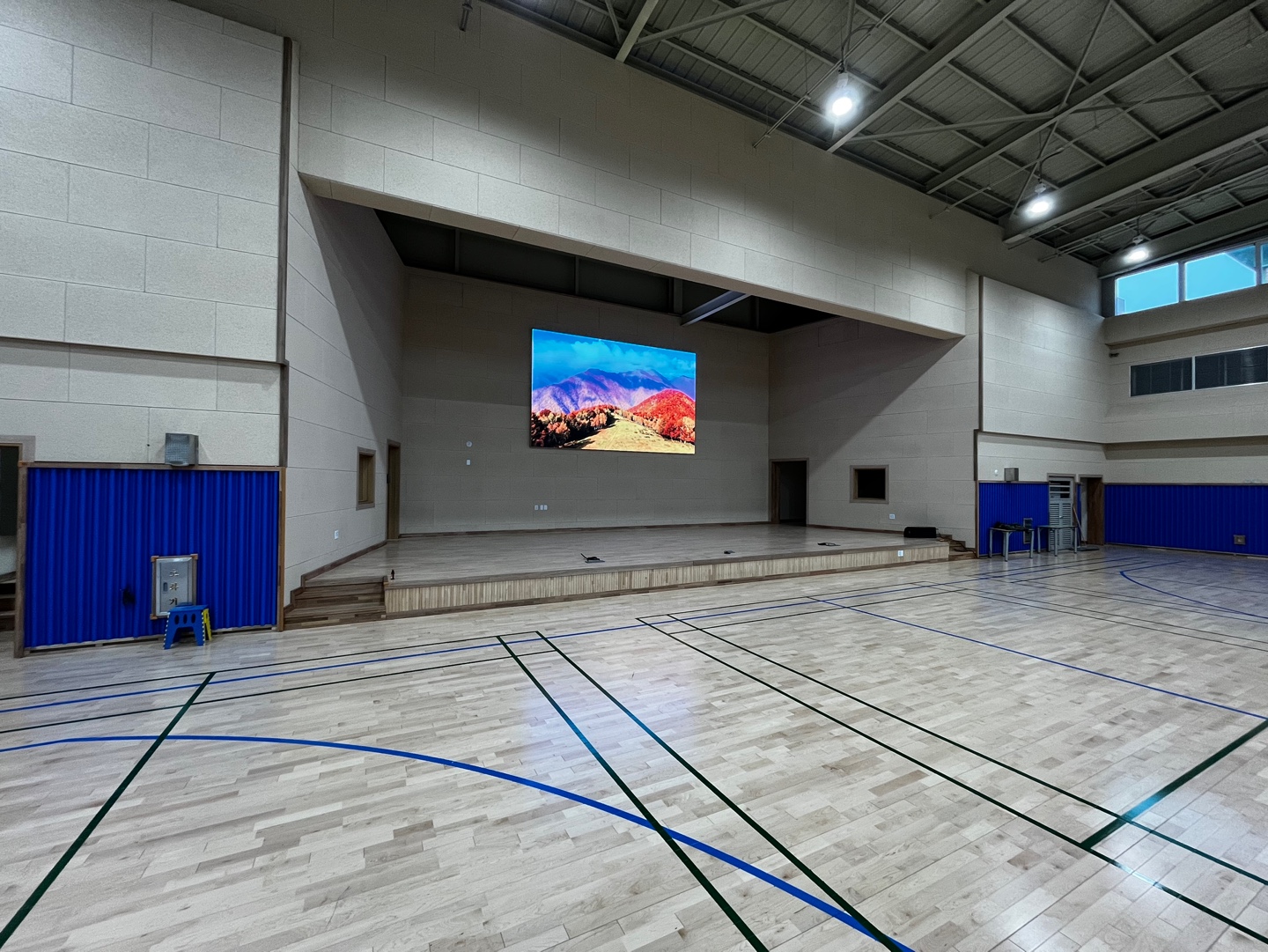 이곳학교의 특징이 각종 실내 경기를 자주 하고 중계도 하는 학교 강당 입니다,