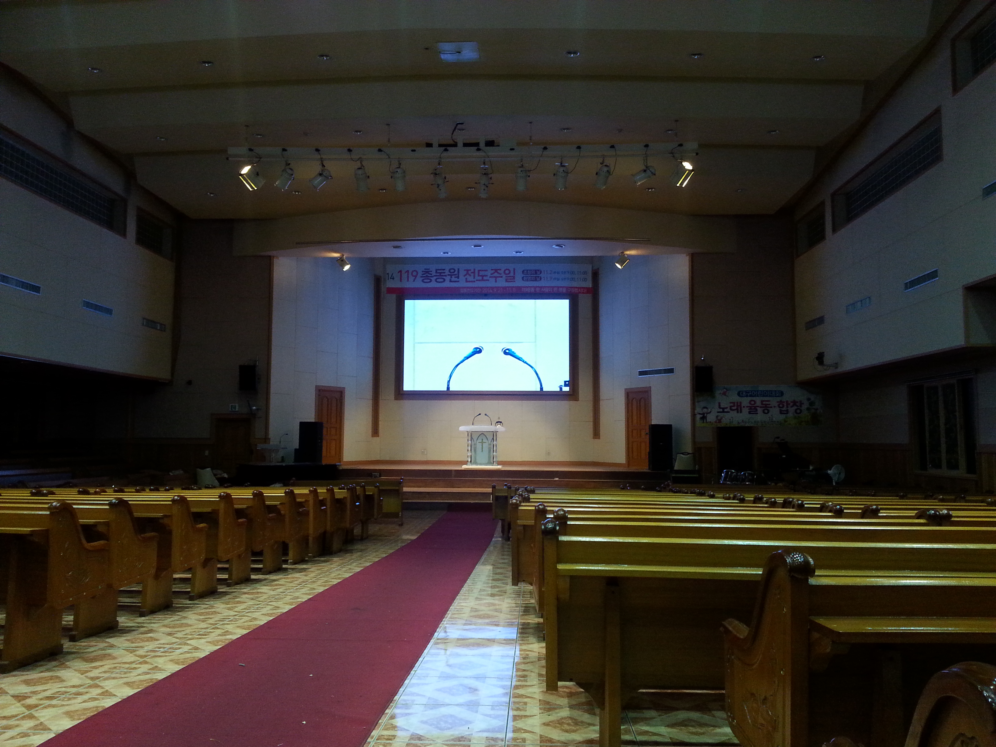 교회 강당 3.7mm LED, 가로 4800mm x 세로 2600mm 220인치 4mm 설치
