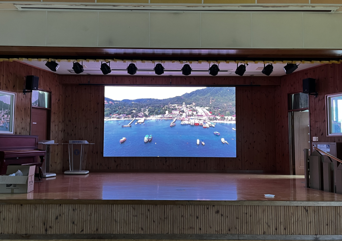 횡성 대동여자중학교 강당 전면에 P2.5mm LED스크린을 설치해