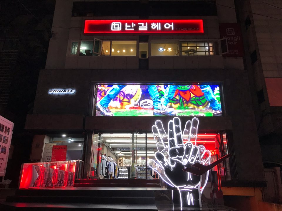 창문 설치 창문을 이용한 대형 광고